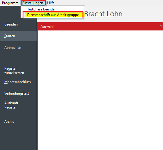 - Programm 10 "Bracht Lohn" aufrufen.